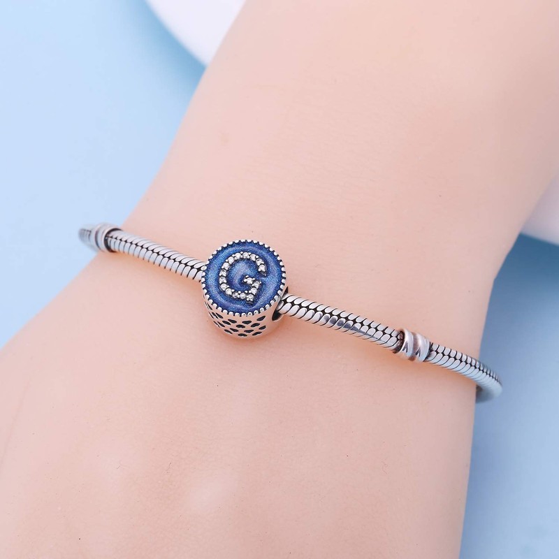 SOUKISS Alphabet A-Z Cubic Stone Charms Solid 925 Sterling Silver Blue Ocean Letter Beads for Snake Chain Bracelet (Letter G)