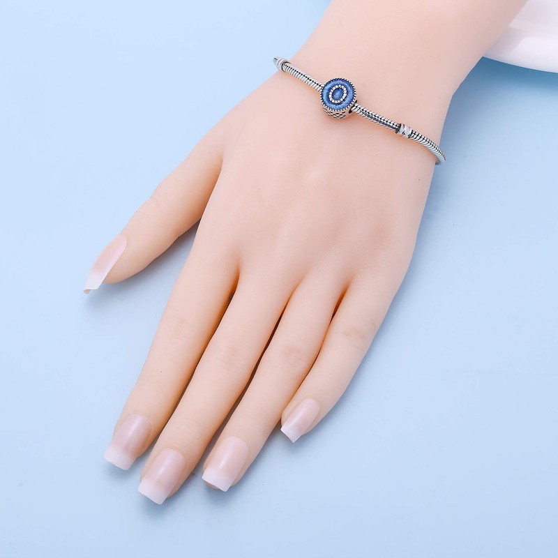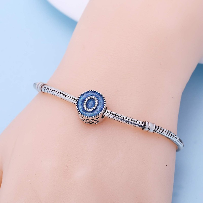 SOUKISS Alphabet A-Z Cubic Stone Charms Solid 925 Sterling Silver Blue Ocean Letter Beads for Snake Chain Bracelet (Letter O)