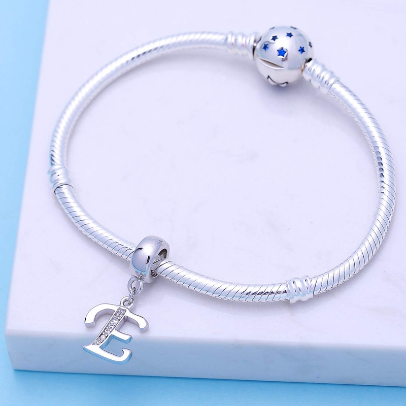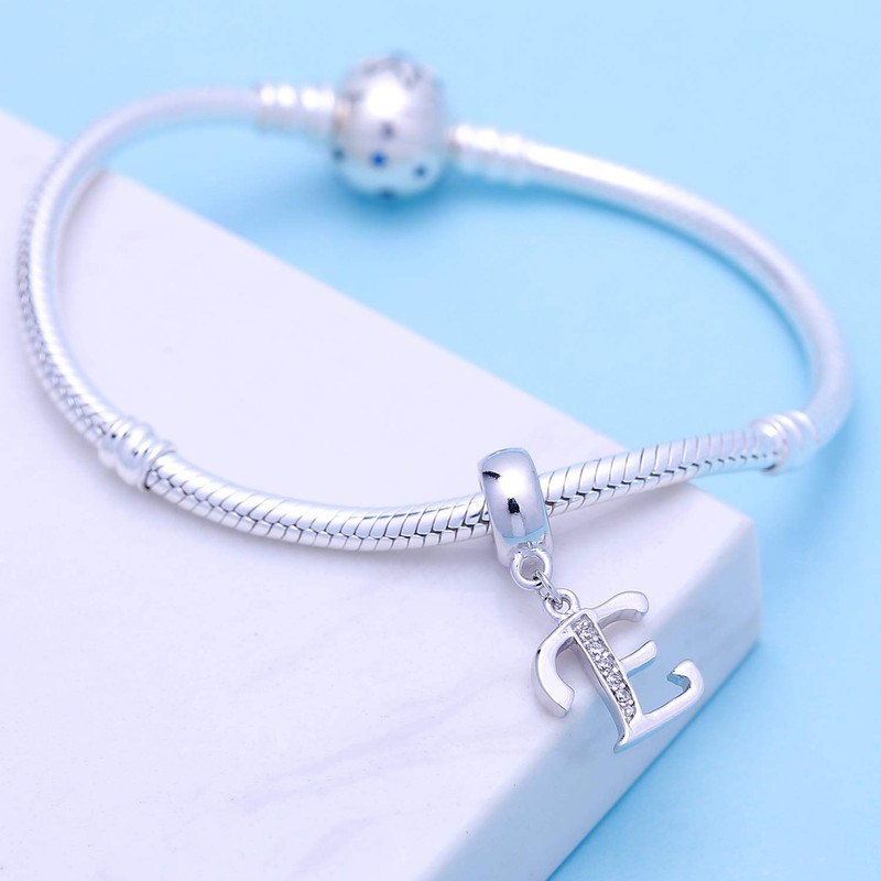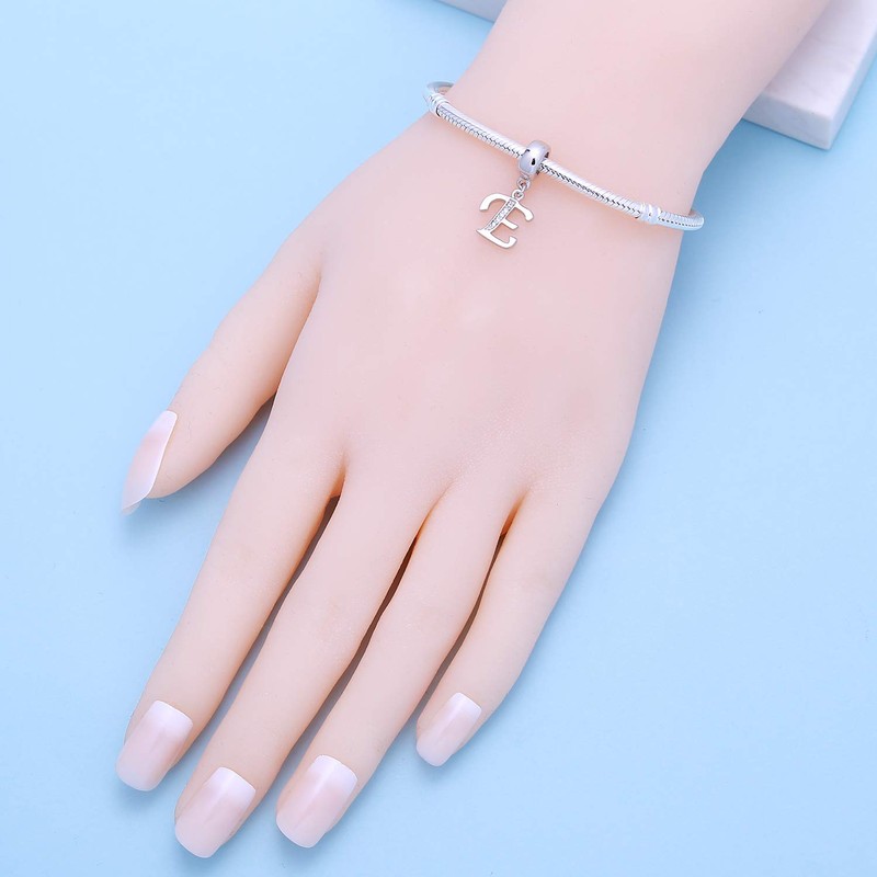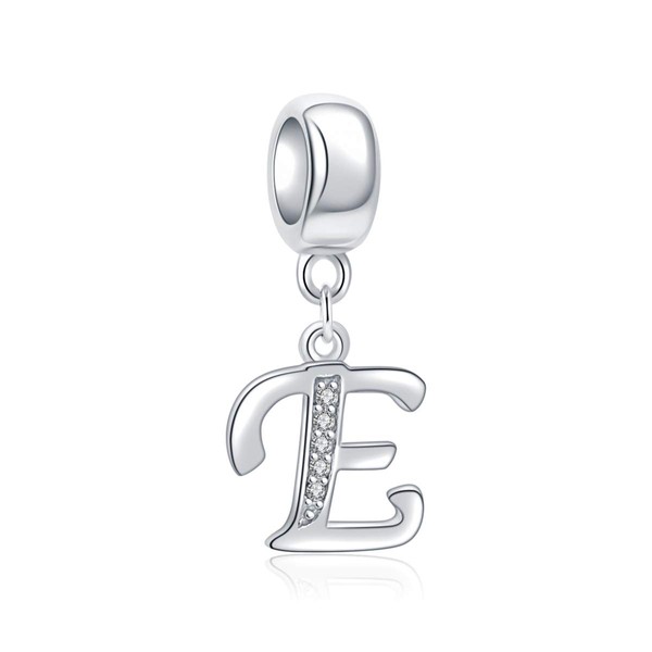 SOUKISS Letter E Charm Sterling Silver 925 Initial A-z Alphabet Beads Name Charm for Bracelet Charms