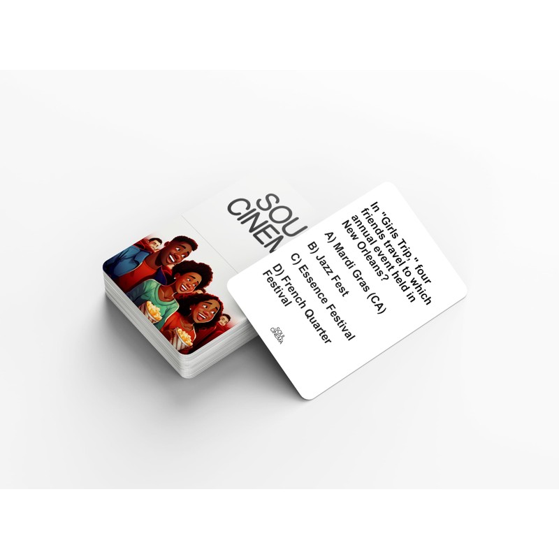 - Fun for the Whole Family: Soul Cinema is the perfect game for everyone, whether you're a casual movie fan or a die-hard cinephile. Dive into a night of laughter, friendly competition, and unforgettable moments as you gather your loved ones to celebrate and test your knowledge of Black cinema classics. With questions spanning iconic films, actors, and unforgettable scenes, Soul Cinema brings the richness of Black film history to your game night, ensuring fun and connection for all ages.