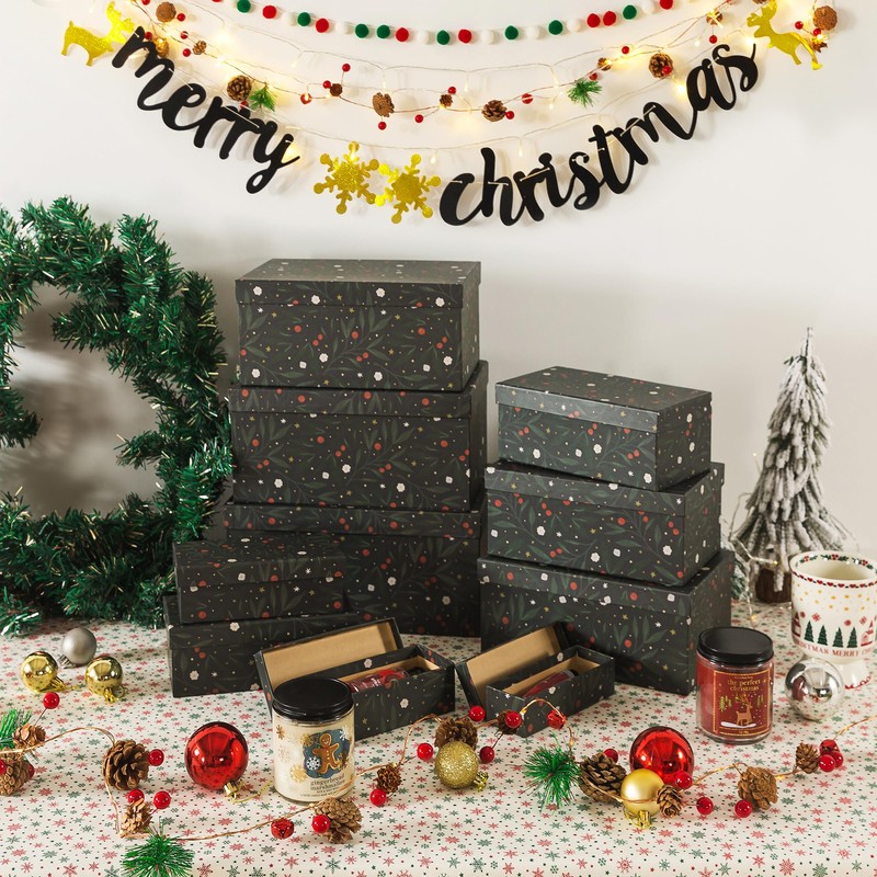 - FESTIVE BOTANICAL DESIGN: Adorned with a charming pattern of green branches and red berries against a dark backdrop, these boxes bring a classic yet elegant Christmas vibe that perfectly complements the holiday season.