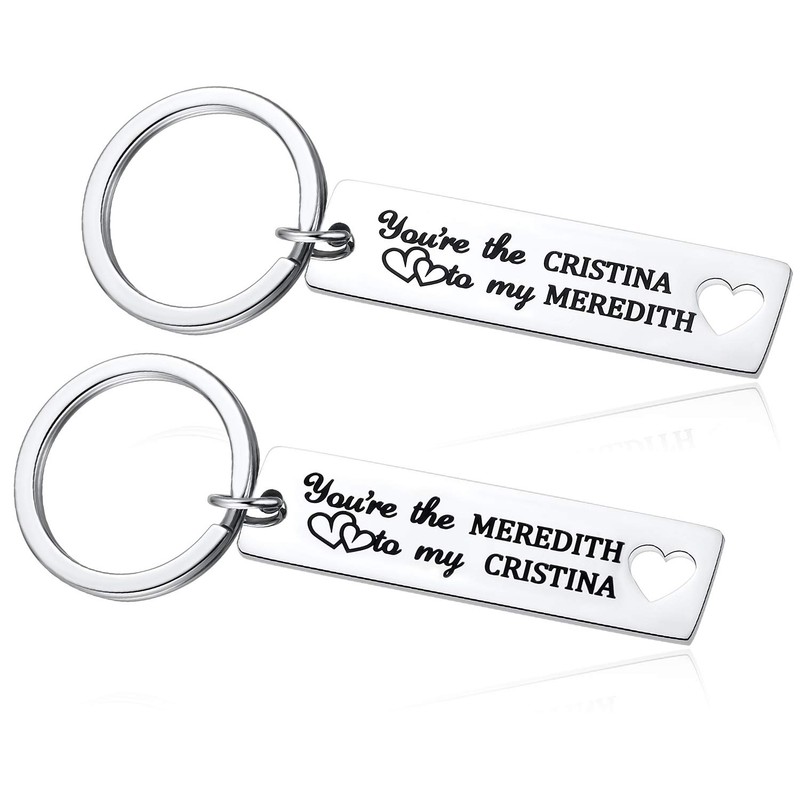 - đź’•Greys Anatomy Merchandise Friendship Key chain - Words with "You Are My PersonYou're the Cristina to my Meredith" and "You're the Meredith to my Cristina", (from "Grey's Anatomy Quote") Best gifts for friend, couples, BFF, girlfriend, boyfriend, brother, sister, wife, husband or anyone you love. This keychain pendant ring is a great present for many occasions like Valentine's day, Anniversary, Mother's day, Valentine's day, Thanksgiving, Christmas and so on.