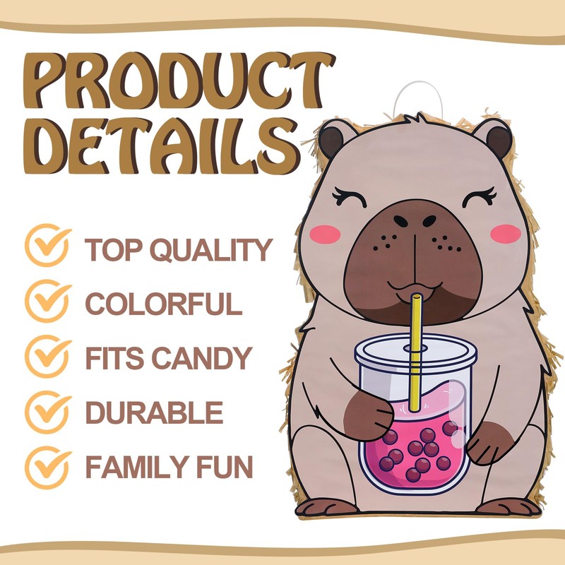 - Quality Materials: the capybara piñata is made of quality paper to ensure a safe and reliable sense of participation in the event; The piñata not only has a beautiful appearance, but also maintains good durability when knocked, and is sturdy in advance, ensuring that the product can play a greater role in the party