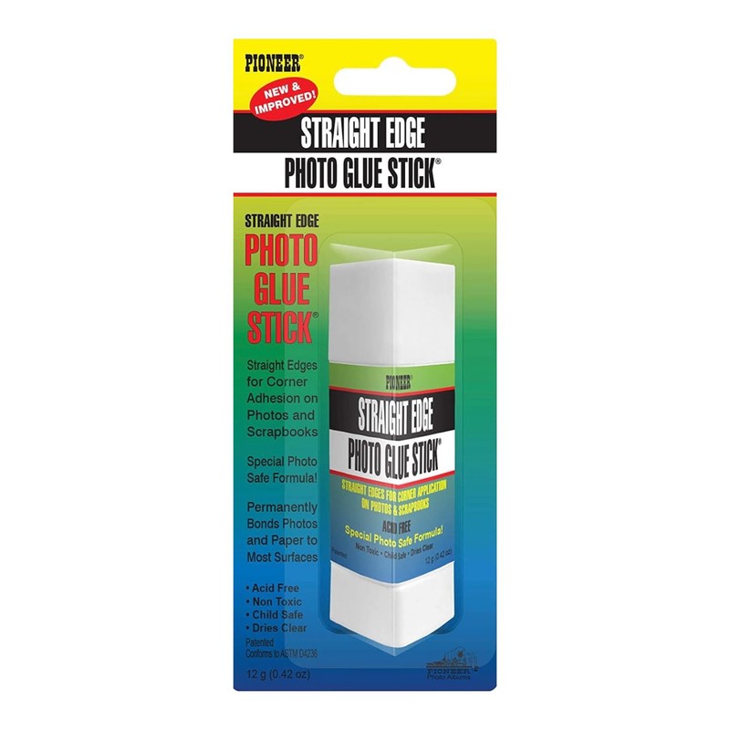 - Pioneer straight-edge glue stick optimized for applying glue to the corners of your images