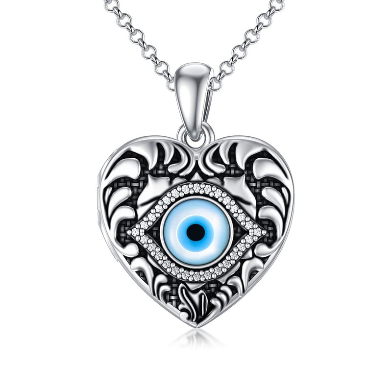 - ❤️ UNIQUE ORIGINAL DESIGN ❤️: Blue evil eye locket with flowers design. The evil eye symbol mainly promises to keep you safe and sound. There is no such thing more mystical than evil eye protection, as its rich “experience” in keeping people feel secure is the most promising fact. This heart pictures necklace keeps someone to your heart and share your sadness, happiness, fear, means good fortune and happiness. It will give you encouragement and remind you to enjoy what you could be missing.