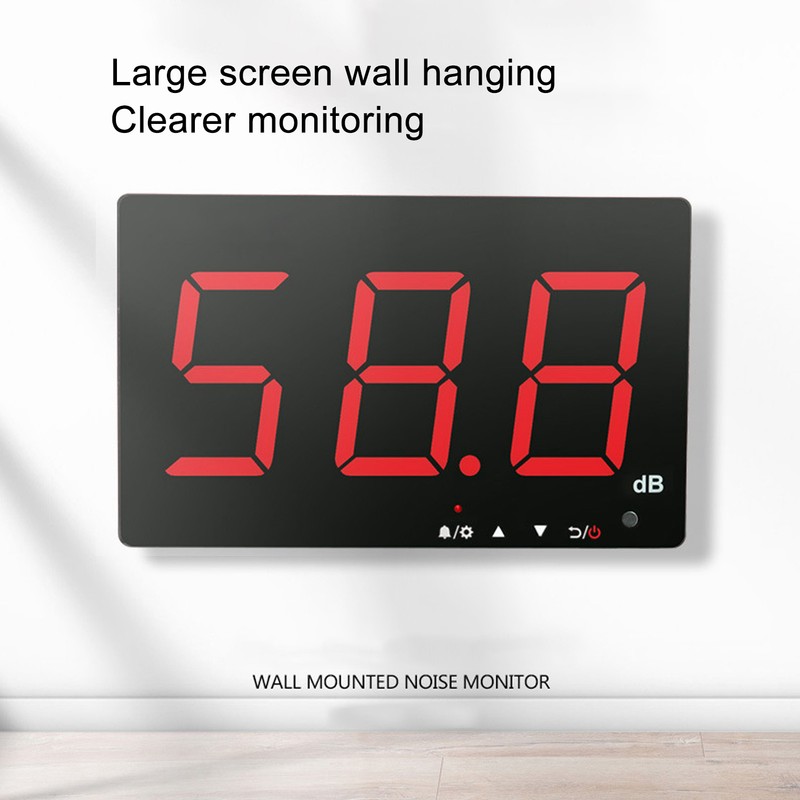 Sound Level Meter 9.6inch LCD Screen Fast Response 30‑130dB Wall Mount Noise Decibel Reader for Classroom Home Street