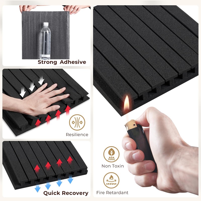 - [Wide Application] This soundproof wall panels not only reduces noise but also minimizes echo and enhances the acoustic environment. As a result, it is widely used in recording studios, music rooms, and home theaters to improve acoustics, as well as in spaces such as conference rooms, offices, home and classrooms to mitigate noise interference.