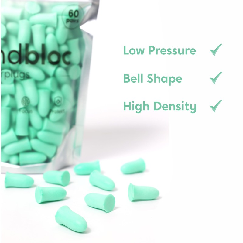- SUPERIOR QUALITY, HIGH DENSITY - The most complete foam earplug on the market. Soundbloc Earplugs use high grade super soft foam to ensure excellent comfort and noise reduction. Noise cancelling ear plugs reduce noise by 35 SNR dB. Hypoallergenic, Non-Toxic and BPA Free.