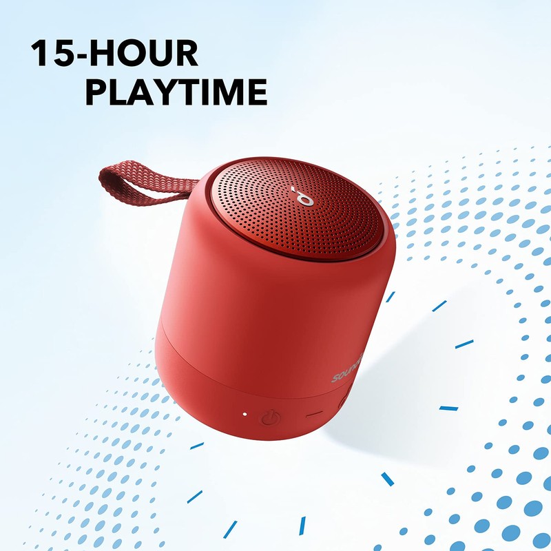 - soundcore Anker Mini 3, Bluetooth-Lautsprecher mit BassUp- und PartyCast-Technologie, USB-C, Wasserschutz IPX7, individueller EQ in Rot