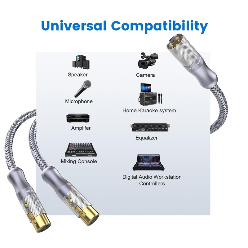 - 【Versatile Compatibility】 Our XLR splitter 1 male to 2 female is designed to seamlessly integrate into any audio setup, whether in a professional studio environment or on stage during live performances. With one female input and two male outputs, it provides flexible connectivity options for microphones, amplifiers, mixers, and other audio devices.