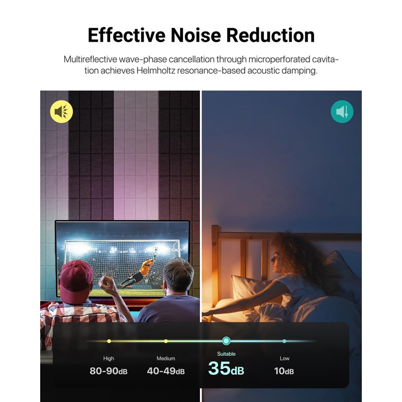 - Wide Application: Merge function and aesthetics with these acoustic panels sound absorbing. Their minimalist vertical-stripe design blends seamlessly into living rooms, offices, or home theaters—serving as both sound absorbing wall panels and chic decorative accents.