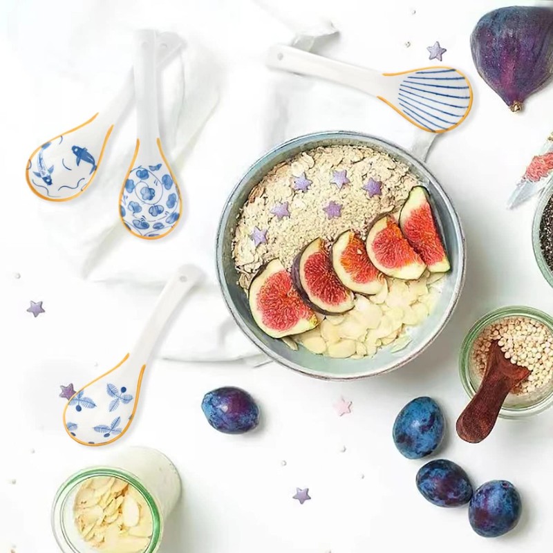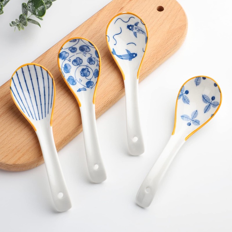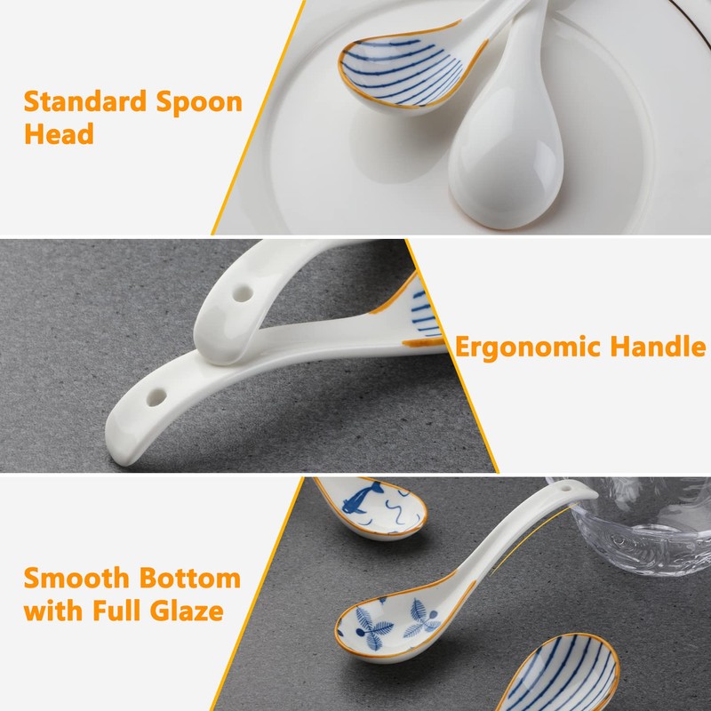- 【Uniqe Pattern】Size: 5.8"L * 1.75"W. Set of 4. Asian soup spoons with 4 unique pattern on the spoons, which is perfectly integrate the blue and white porcelain. which makes each spoon color unique and beautiful