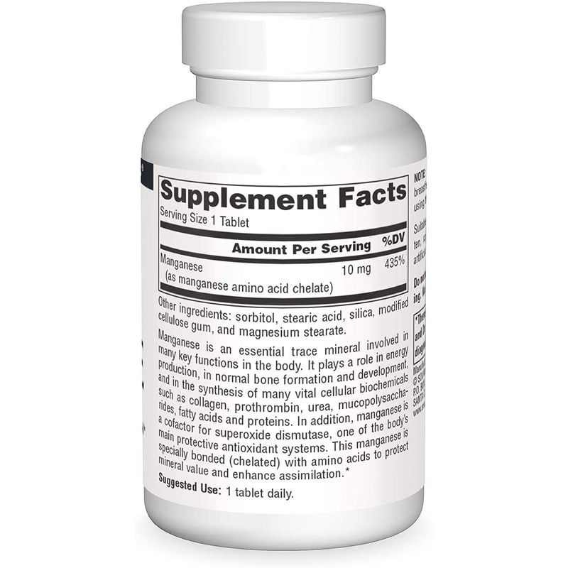 Source Naturals Manganese, Amino Acid Chelate - Supports Energy Production - 250 Tablets