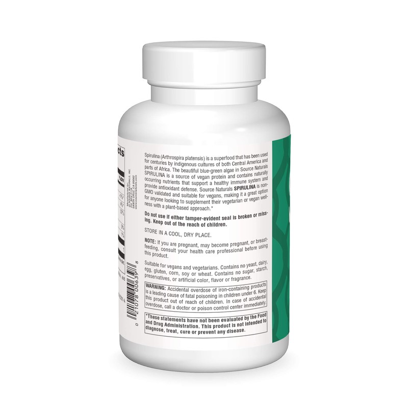 For over 30 years spirulina (Arthrospira platensis) has been the premier choice for supplementing a vegetarian diet. Source Naturals Spirulina is of the highest quality available. Preliminary research suggests that spirulina, a blue-green algae, supports the immune system and healthy circulation. It is a high-quality protein, which contains all nine essential amino acids. Please contact our in-house customer support if you have any questions.