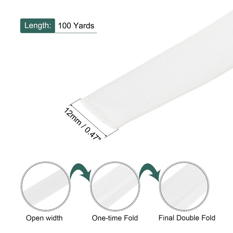 sourcing map 1/2 Inch Double Fold Bias Tape Polyester Continuous Bulk Bias Tape for Sewing, Seaming Quilting Hemming Binding Crafts (White 100 Yards)