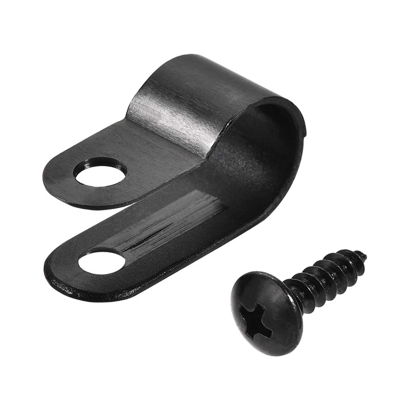 sourcing map 10.4mm Nylon R Type Cable Clip Wire Clamp with Screws Black 50pcs