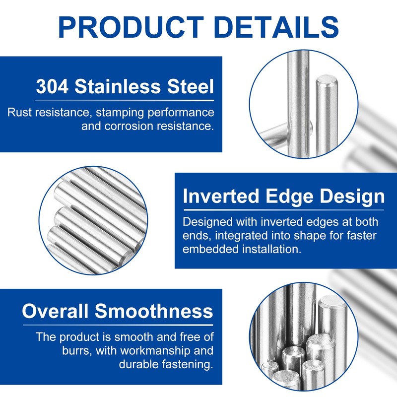 Robust and Long-Lasting: The dowel pins are crafted from 304 stainless steel, not easy to rust, resistant to corrosion, ensuring a durable and reliable performance that stands the test of time
