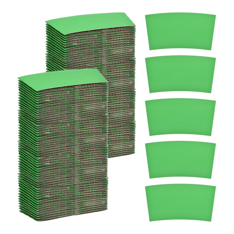 sourcing map 100pcs Disposable Coffee Cup Sleeves, Cardboard Cup Sleeves for Paper Cups Insulation Hand Protection, Hot Drink Holder for Home Office Use Green