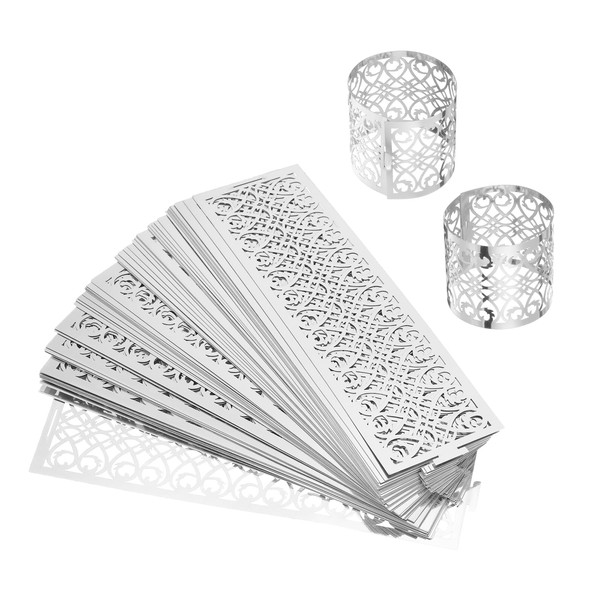 sourcing map 100Pcs Napkin Rings Laser Cut Foil Paper, Napkin Holder Hollow Napkin Bands for Weddings Party Serviette Table Decoration Restaurant (Reflective Silver Tone, 5.3 x 1.6")