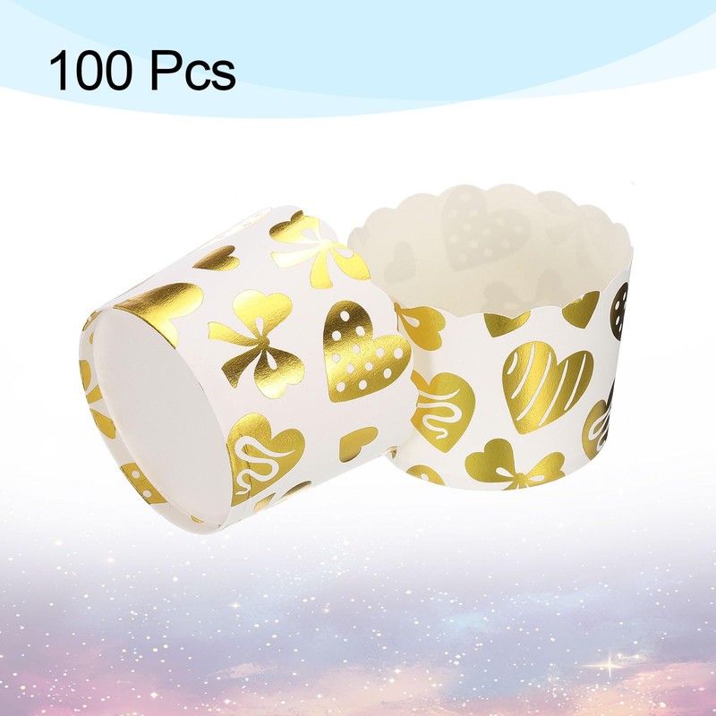 sourcing map 100Pcs Paper Baking Cups 6oz Cupcake Wrappers Scalloped Muffins Cases Liners Disposable Greaseproof Containers for Birthday Party, Gold Heart