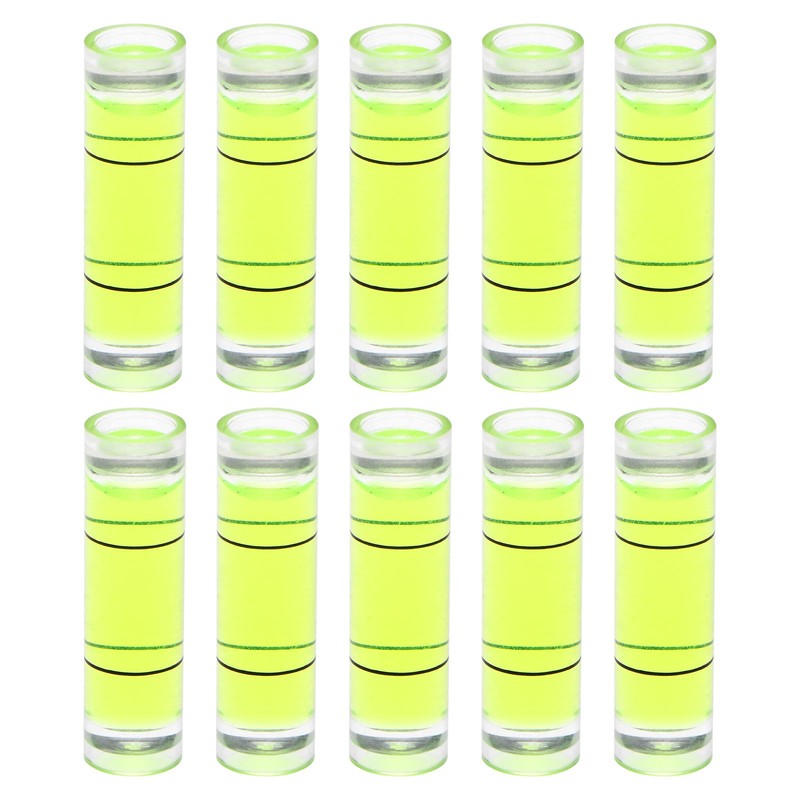 sourcing map 10pcs Cylindrical Bubble Level 9.5x34mm Mini Bullseye Spirit Levels for Leveling Camera Tripod Telescope Workshop Turntable Pictures Frame, Green