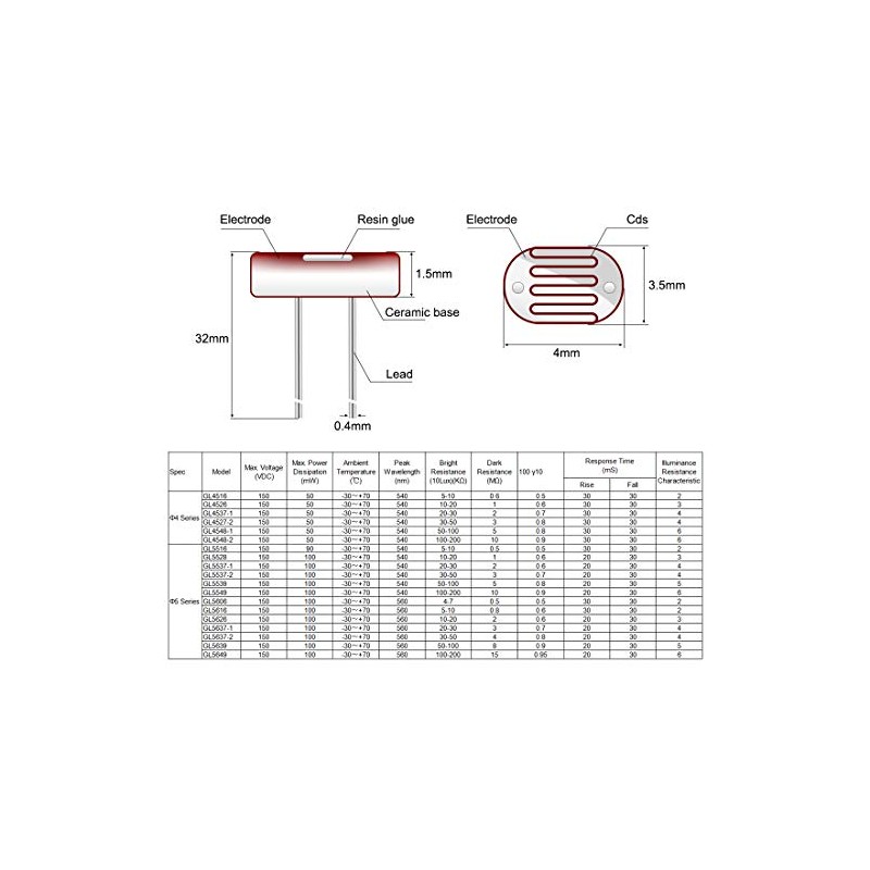 sourcing map 10pcs Photoresistor LDR 4mm Light-Dependent Resistor Sensor GL4516