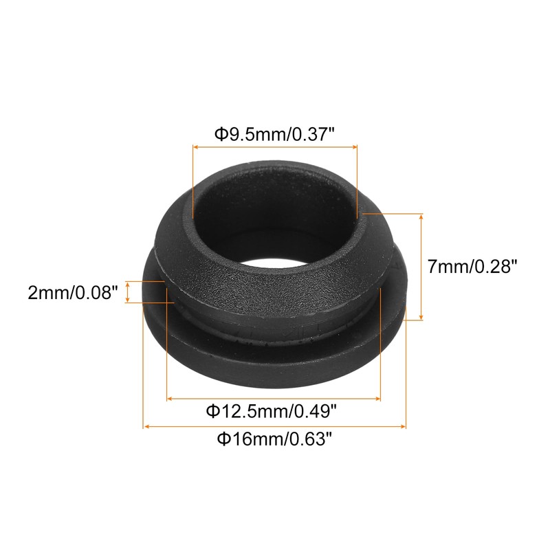 • Size: 16 x 9.5 x 7mm/0.63 x 0.37 x 0.28-inch (OD*ID*H); Mounting Hole Dia.: 12.5mm/0.49-inch; Groove Width: 2mm/0.08-inch