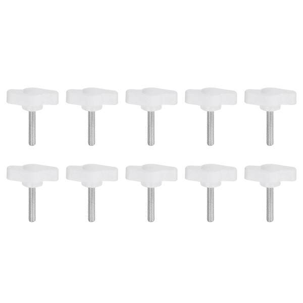 sourcing map 10pcs Tee Wing Knobs Thumb Screws M4 x 20mm Standard Male Thread Plastic T/Z Knobs Adjustable Handles Hand Clamping Thumbscrew, White