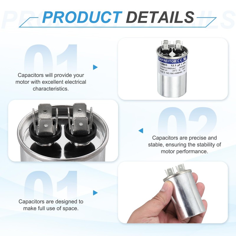 sourcing map 12.5MFD CBB65 Run Start Capacitor 12.5uF, 370/440V Round AC Capacitor for AC Motor Run, HVAC, Air Conditioner, Condenser Motors