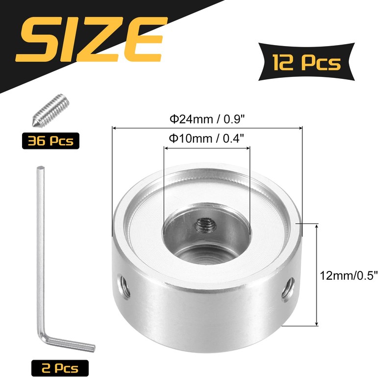 - Inner Diameter: 10 mm/0.4 inch; Outer Diameter: 24 mm/0.9 inch; Height: 12mm/0.5 inch; Material: Metal; Color: Silver; In the package of: 12 Pcs x Footswitch Toppers
