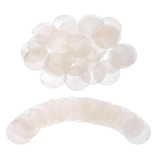 sourcing map 120Pcs Capiz Shells 2" Round Natural Shells with 2 Holes for Seashell Wind Chimes Curtain Shell Garland DIY Craft Wedding Home Decoration, White