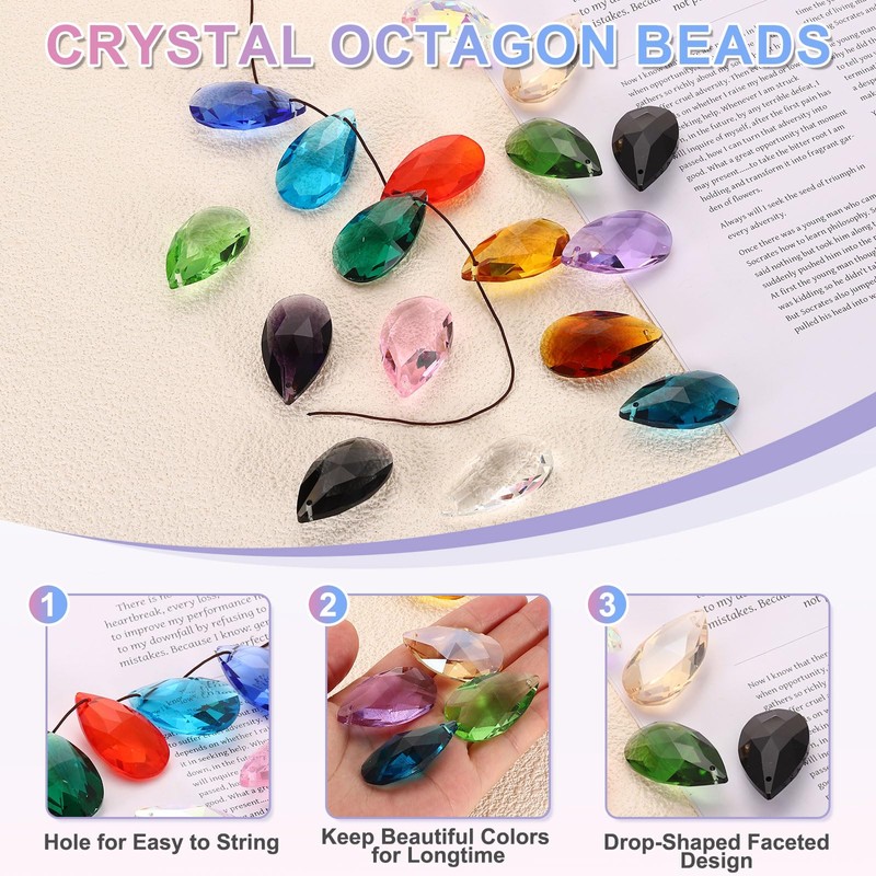 - [Design]: The crystal glass beads are drop-shaped in design, with bright faceted edges, bright colors, and sparkling. Faceted glass beads can capture and reflect light, sparkling beautifully under the light, adding brilliant light and charming charm to your jewelry and craft projects