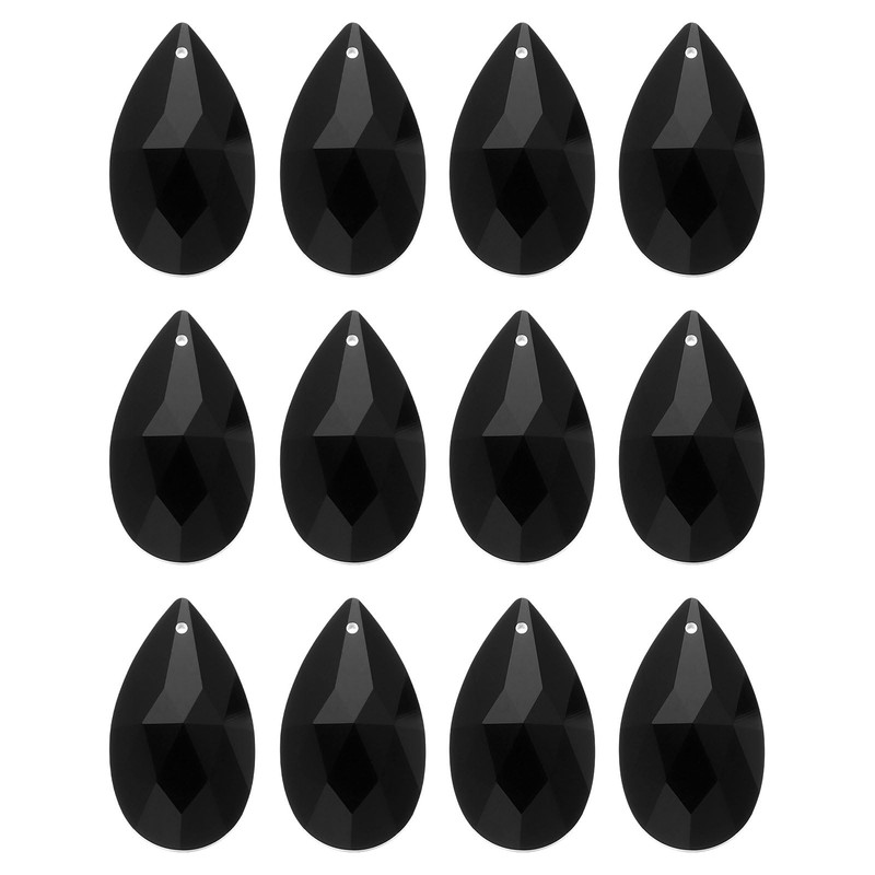 sourcing map 12Pcs Teardrop Crystal Beads, 38mm Faceted Chandelier Hanging Pendants Beads, Chandelier Prisms Parts for Home Hanging Decoration, Black