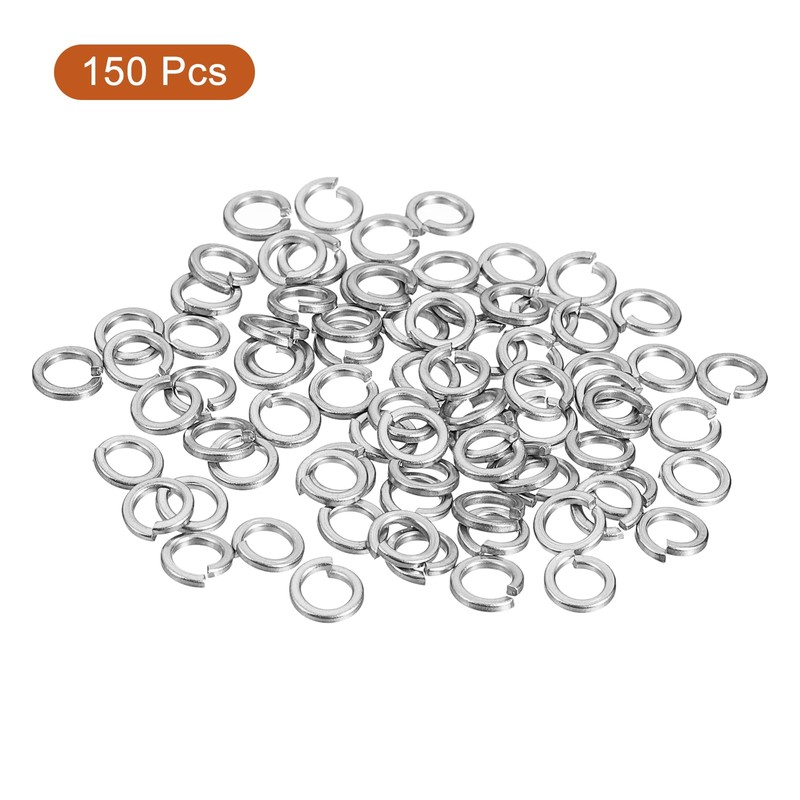 sourcing map 150 Pcs Spring Lock Washer, M4 Split Lock Washer Assortment 304 Stainless Steel Lock Washers for Screws Bolts Nuts, Silver