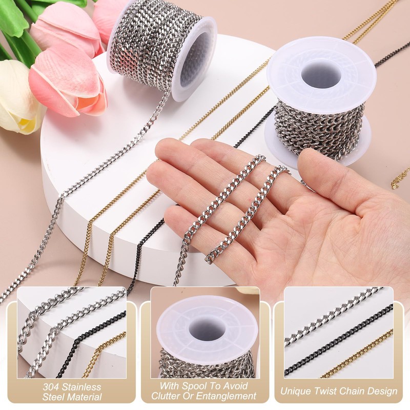 - Durable & Unique: The Cuban chain is made of 304 stainless steel, which is durable, resistant to breakage, and features rust resistance, oxidation resistance, and fade resistance. The design of the twist chain is unique and simple, and can be paired with other jewelry making tools to showcase fashion and elegance