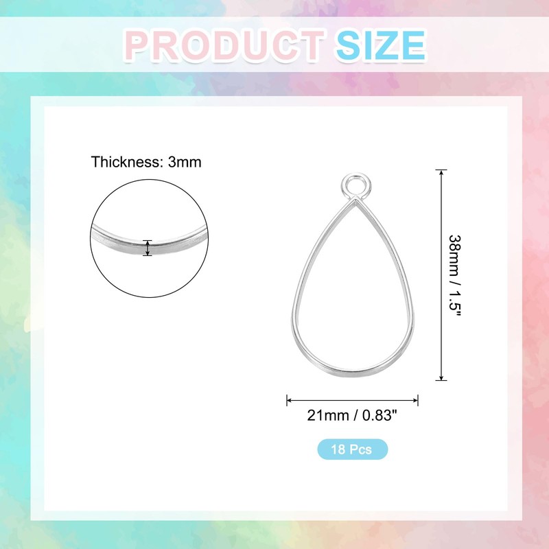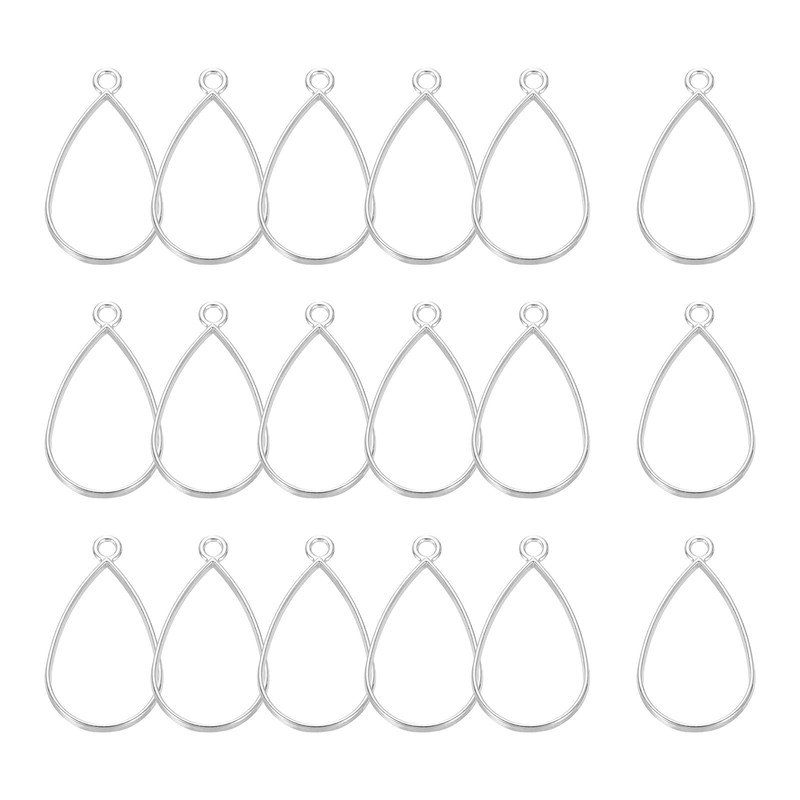 sourcing map 18 Pcs Open Bezel, Teardrop Resin Bezels Pendants Open Back Bezels Metal Hollow Frame Charm for DIY Resin Crafts Earrings Jewelry Making, Bright Silver