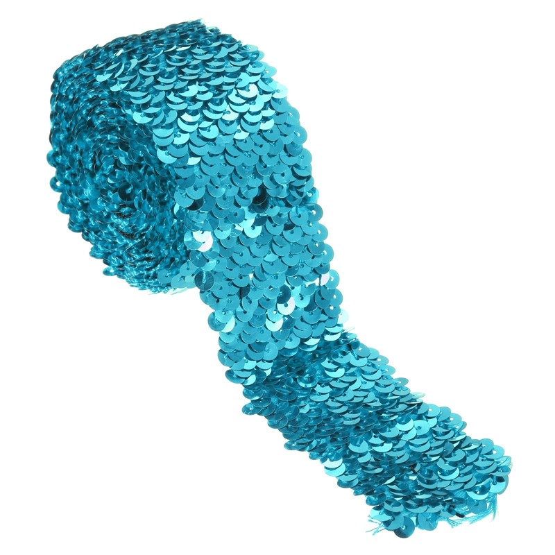 - The elastic sequin strip provides here:Color:Lake Blue; Material: PVC; Size: 4.8cm x 2.2 Yards / approx. 1.88 Inch x 2.2 Yards(W*L);There are many colors and sizes for you to choose