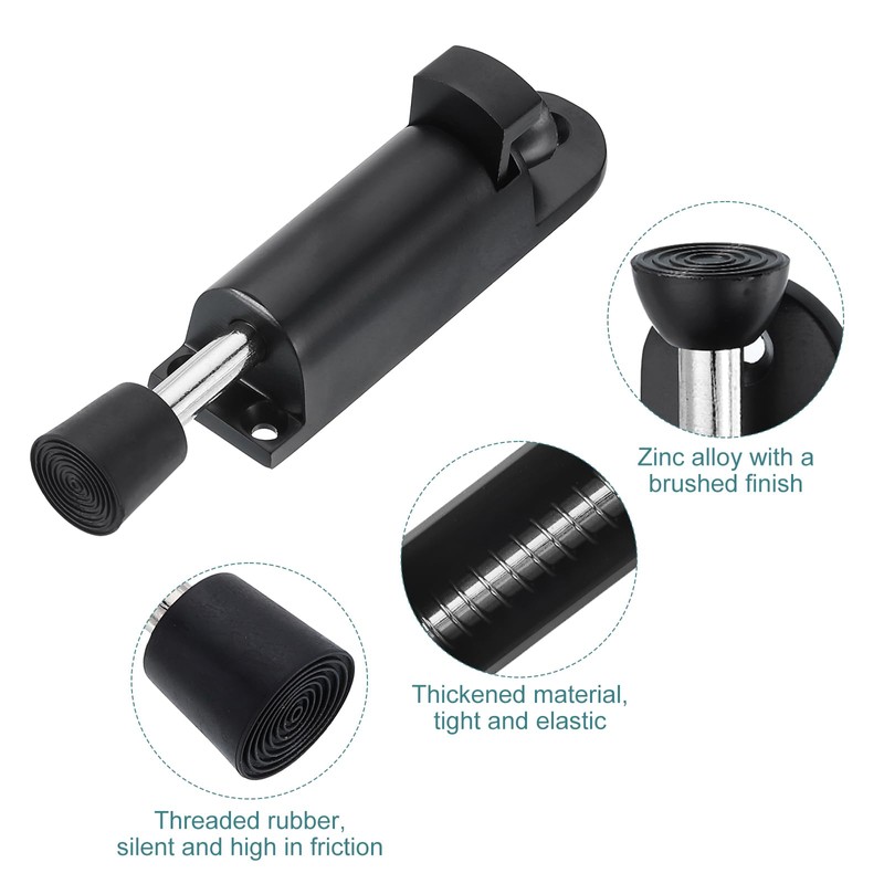 sourcing map 2 Pack Kickdown Door Stop, Spring Loaded Telescopic Door Stopper, Adjustable Door Locks Holder for Distance from The Ground 25mm/0.98", Black