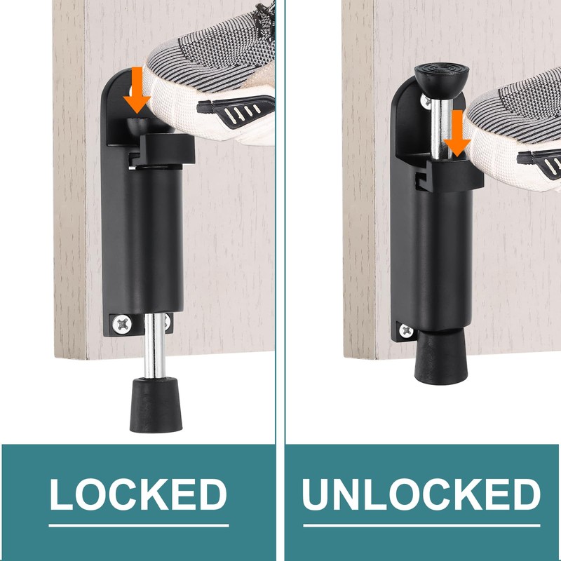 - [Easy Installation]: The door stopper allows for easy installation and operation. Make sure the door stopper is in the right position, then secure the door stopper with screws. When in use, simply feet press the door stop to secure it in place and release it with another press