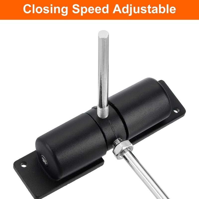 - [Spring Door Closer] - Our auto spring door closer can be installed in the door 20-40kg, the door closer Length is 128 mm/5.04 inches, with the arm rod length: 145 mm / 5.71 inches; The arm is adjustable, so you only need to lower it when you don't need to use it, without completely disassembling it.