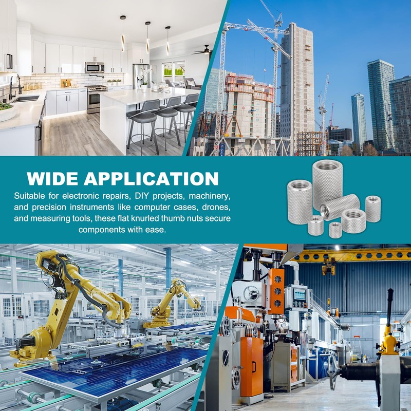 - These flat knurled nuts are widely used in various industries, including home improvement projects, the chemical industry, the construction industry, mechanical equipment, the metallurgical industry, the automobile industry, and the power industry. They are reliable fasteners for various tasks. Mainly used in DIY projects, furniture, fixing panels, mechanical parts, decorative products, etc.
