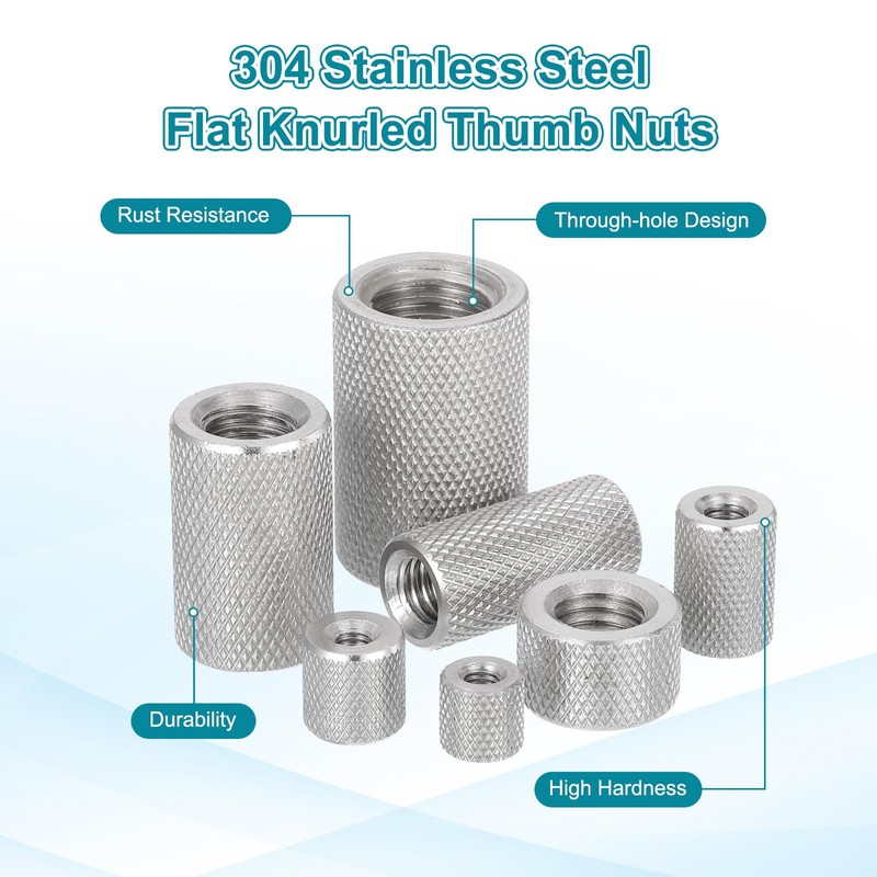- Easy to install. Identify the appropriate locations for the thumb thin nuts in your project and align each nut with the corresponding screw or threaded rod to ensure proper insertion. Use your fingers to turn the knurled nut clockwise to secure it in place.