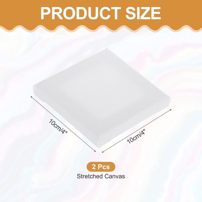 - Color: White, Material: Pure cotton, Size:4 x 4inch/10x10cm, Internal dimensions: 6.5x6.5cm/2.56x2.56inch, In the package of: 2 x Stretched Canvas