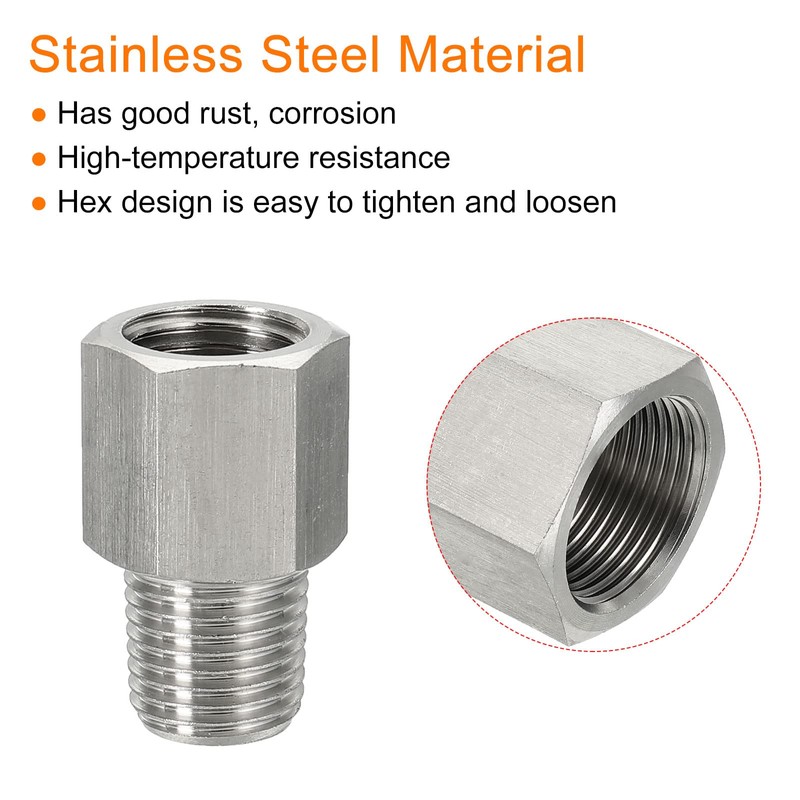 sourcing map 2 Pieces Hex Reducer Socket, 1/4 PT Male to 1/4 PT Female Stainless Steel Pipe Fitting Reducer Adapter