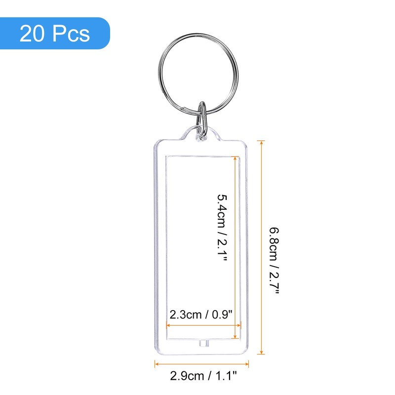 sourcing map 20 Pcs Photo Frame Keyring, Acrylic Picture Keychains Clear Photo Insert Keychain 1.1 x 2.7 Inch Strip Blank Photo Keychains for Photo Display Supplies, Transparent