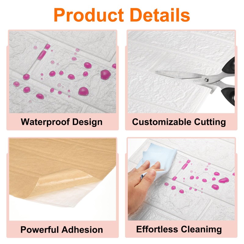 - Features - The wall stickers feature a 3D effect with a textured, raised masonry design that greatly enhances both visual and tactile experiences, making your space more modern and minimalist. It is also easy to clean and resistant to common kitchen and bathroom spills and splashes.