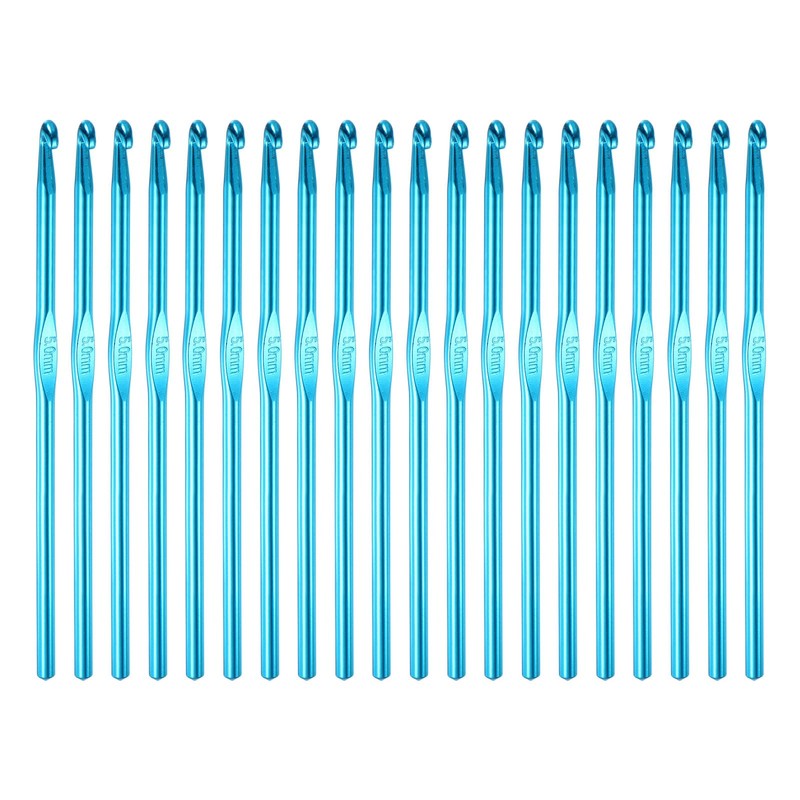 sourcing map 20Pcs Aluminum Crochet Hook 5.0mm US Size H (Size 8) Knitting Needles for DIY Craft Yarn Blue