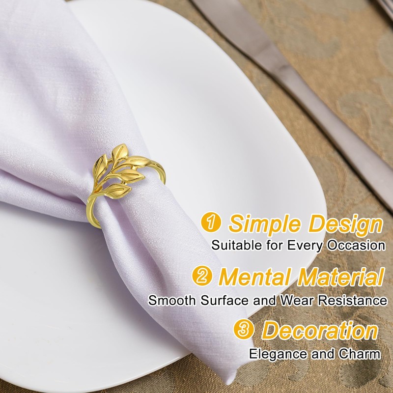 - [DESIGN]: The leaf napkin rings simulate the look of leaves, sparkling under the light, the unique and elegant design brings elegance to your table and adds a touch of charm to your table setting.