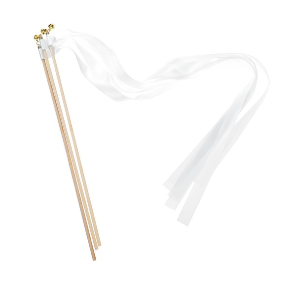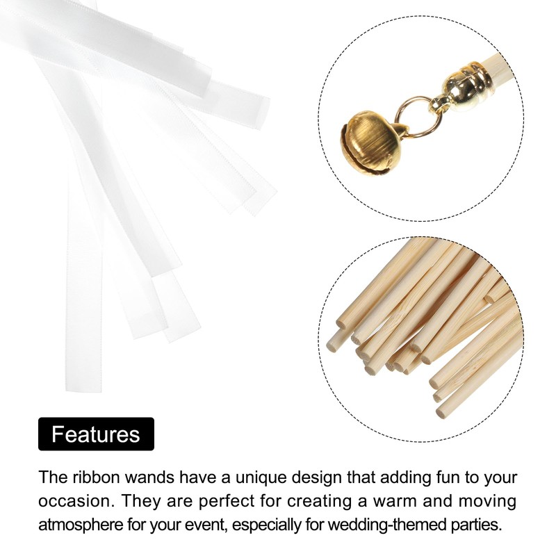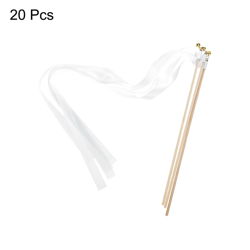 sourcing map 20Pcs Wedding Party Ribbon Streamers Sticks for Wedding Party Celebration White