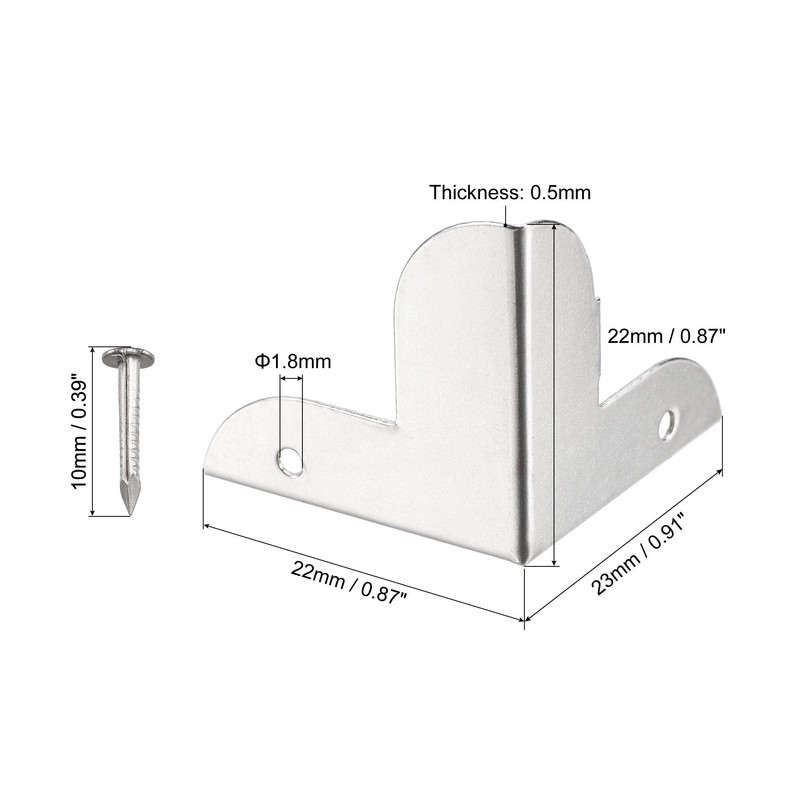 - Size - Mount Hole Diameter: 1.8mm; Thickness: 0.5mm; Nail Size: 10 x 1.2mm / 0.39" x 0.05"(L*Max.D); Total Size: 22 x 22 x 23mm / 0.87" x 0.87" x 0.91"(L*W*H)